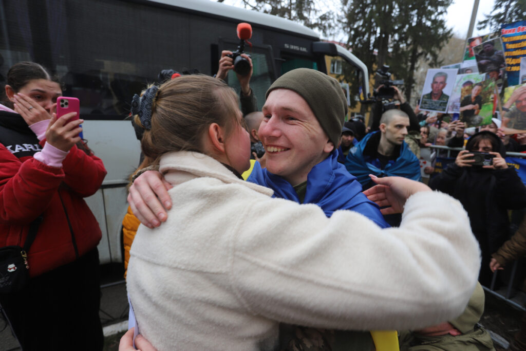 11 апреля, накануне православной Пасхи, состоялся ожидаемый обмен военнопленными между Украиной и Россией. Всего из плена освободили 182 человека — 175 военнослужащих и семь гражданских. Впервые за долгое время многие из тех, кто находился в российском плену с 2022 года, были освобождены. Ранее таких случаев было лишь немного. Освобожденные военнопленные выходят из автобуса (Фото Сергий Костеж/набат) Каждый мог увидеть и почувствовать это, когда к месту обмена первыми подъехали ambulances — обычно их не так много, но на этот раз их было до десяти машин. Среди тех, кто держался в плену с 2022 года, многие были ранеными и тяжело больными. Раненые